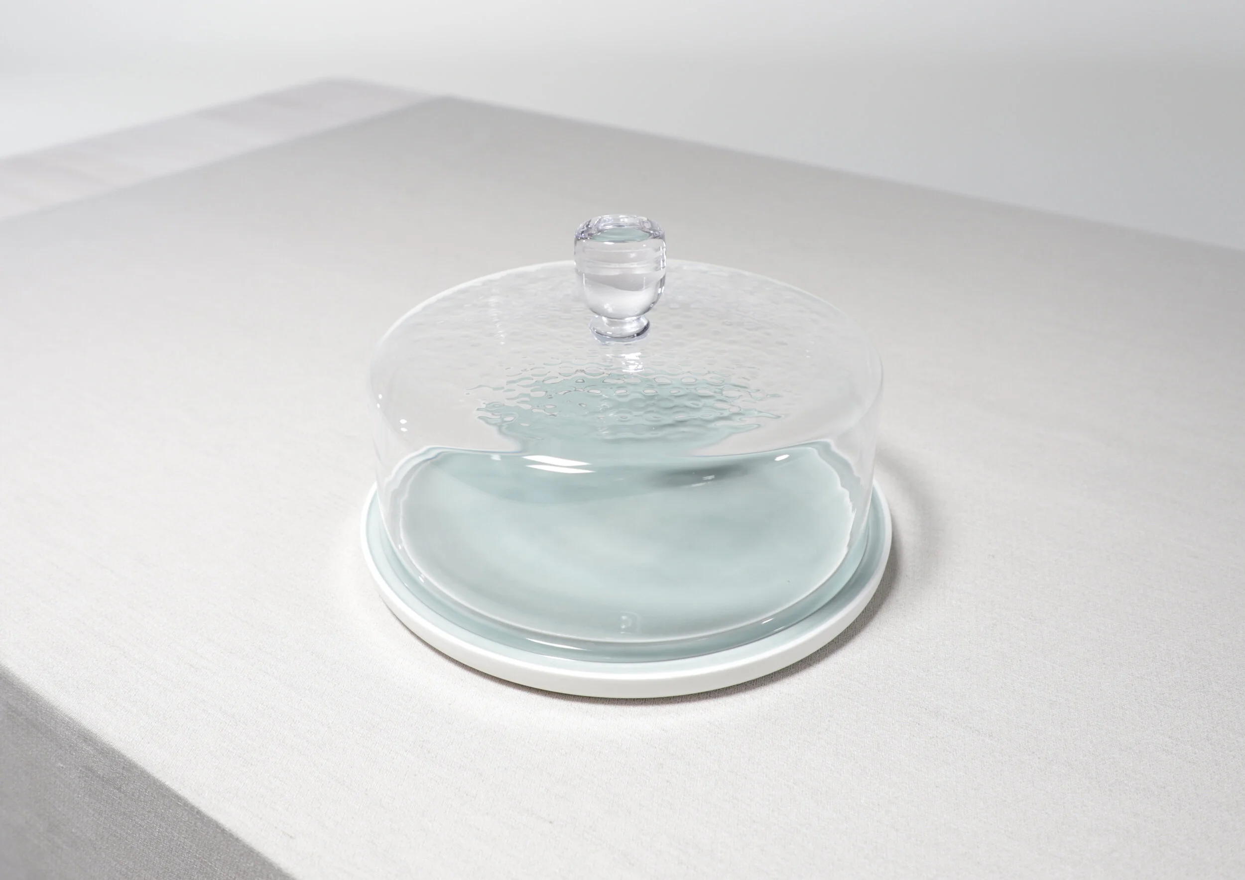 Traditional item brought into modern day brings luxury onto the coffee table. The over-sized handle gives character to the cake cloche.